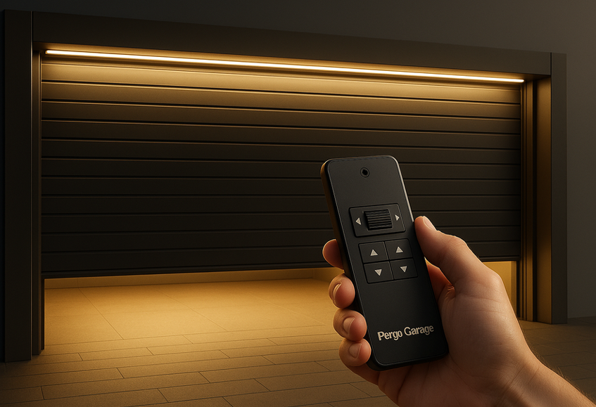 Effortlessly manage your garage’s LED lighting, louvres, and roller shutters — all with one sleek remote.