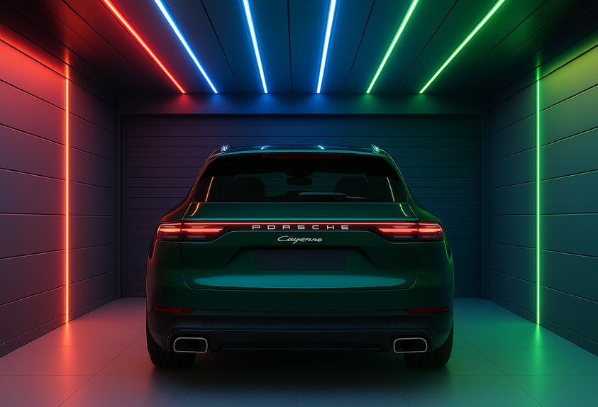 Transform your space with custom RGB LED lighting — choose from an aray of different colours to create the perfect mood inside your Pergo Garage.